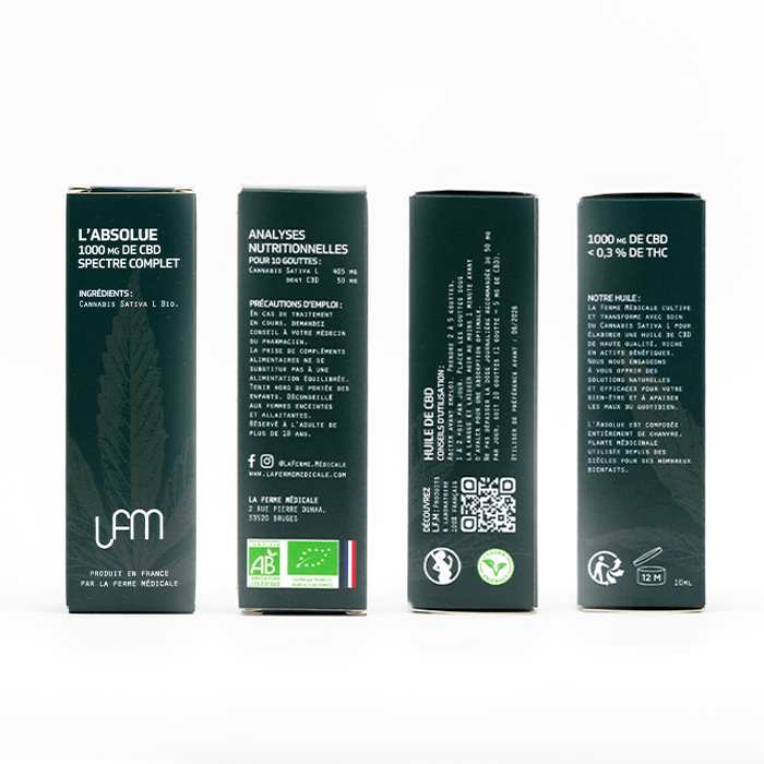 La formulation des produits de La Ferme Médicale® est complète et naturelle, élaborée en tenant compte des retours des patients du Dr. Claire Ader, responsable du centre anti-douleurs de Toulouse. L'entreprise utilise une synergie d'actifs différents pour créer des produits adaptés à divers besoins, avec des concentrations variées pour s'ajuster à chaque consommateur. Le processus d'extraction permet de conserver tous les composants actifs du chanvre, produisant ainsi des extraits de spectre complet de haute qualité. Ces extraits sont ensuite utilisés pour fabriquer différentes huiles de CBD aux concentrations précises, garantissant la naturalité et la complétude des préparations. De plus, chaque lot est analysé en laboratoire pour assurer l'exactitude de la concentration des produits, offrant ainsi une solution naturelle et fiable pour le consommateur.